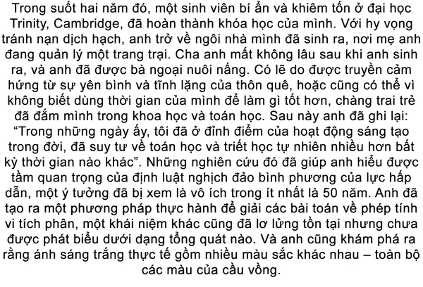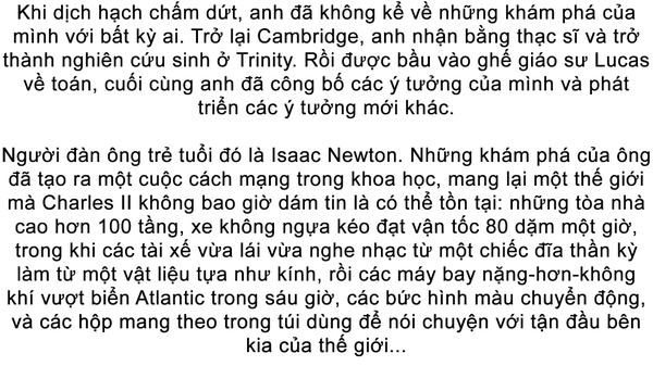 Trong cuốn Không bao giờ ngơi nghỉ (Never at Rest), người viết tiểu sử Newton là Richard Westfall đã diễn tả bổ đề này là căn bản và mới mẻ như thế nào: