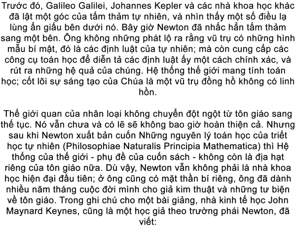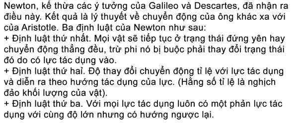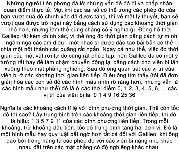 t là t2. Một phép phân tích đơn giản thôi cũng sẽ khôi phục lại được kết quả chủ chốt của Galileo: đường đi của một viên đạn là một parabol. Các định luật chuyển động của Newton không chỉ cung cấp cho ta cách tính toán chuyển động của các vật, chúng còn dẫn dắt chúng ta đến các nguyên lý sâu sắc và tổng quát của vật lý. Đỉnh cao trong số đó là “các định luật bảo toàn”, cho ta biết rằng khi một hệ chuyển động, dù phức tạp thế nào đi nữa, thì một số đặc trưng của hệ đó là không thay đổỉ. Trong cảnh rối ren của chuyển động, một vài thứ vẫn bình an, không bị ảnh hưởng gì. Có ba đại lượng được bảo toàn, đó là năng lượng, động lượng và momen động lượng.