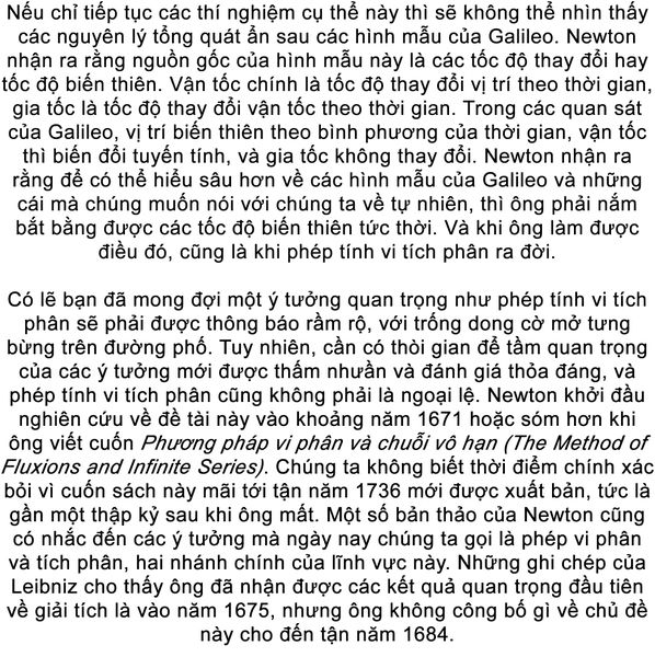 Những người cùng thời Newton đã phải nỗ lực rất nhiều để có thể hiểu về cái mà Newton đã tìm ra. Berkeley có lẽ chưa bao giờ làm được, bởi vì – như chúng ta sẽ thấy ngay dưới đây – nó chứa đựng những ý tưởng căn bản cần thiết để bác bỏ sự phản đối của ông ta.