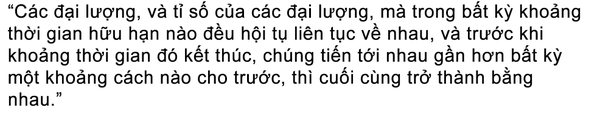 Như vậy, trong quá trình tính toán, không có trường hợp nào chúng ta phải chia cho số 0 cả, bởi vì chúng ta không bao giờ đặt h = 0. Hơn nữa, cũng chẳng có gì thực sự trôi đi ở đây. Vấn đề là khoảng giá trị mà h biến thiên, chứ không phải là nó biến thiên như thế nào trong khoảng đó. Do vậy, sự châm biếm của Berkeley là hoàn toàn chính xác. Giới hạn L chính là bóng ma của các đại lượng biến mất, tức h của tôi, và o của Newton. Nhưng cách biến mất của các đại lượng này – tiến đến 0, nhưng không đạt tới giá trị ấy – đã dẫn tới một bóng ma được định nghĩa hoàn hảo về mặt ý nghĩa và logic.