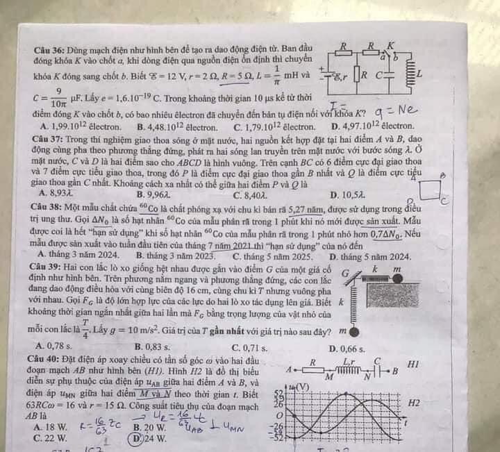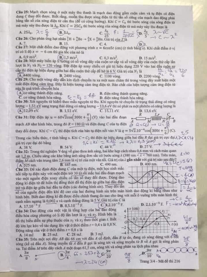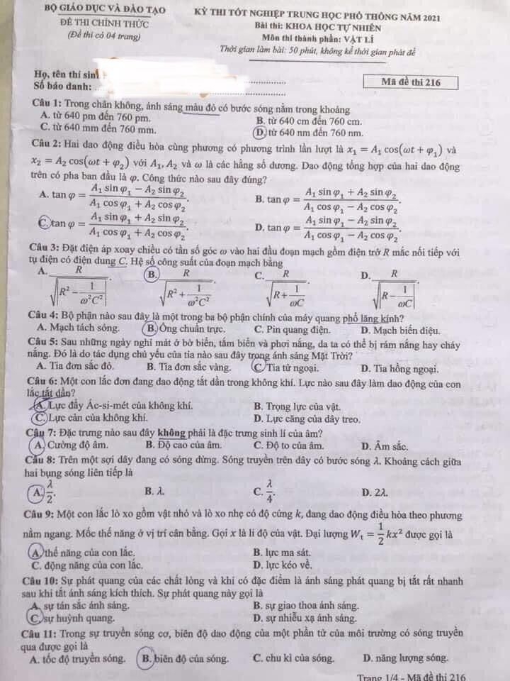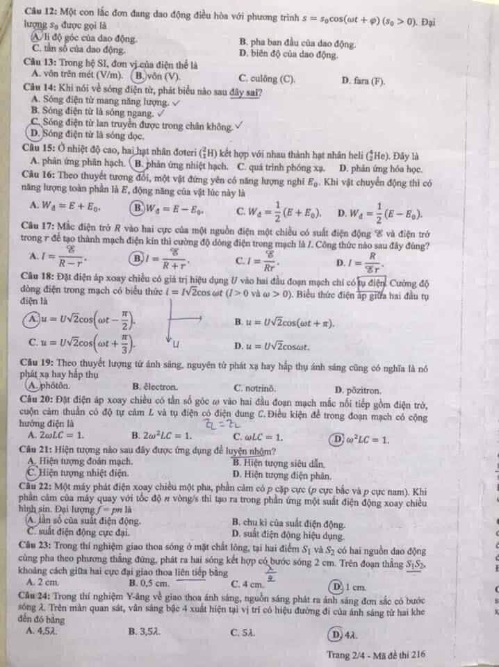 Đề thi (mã đề 216):